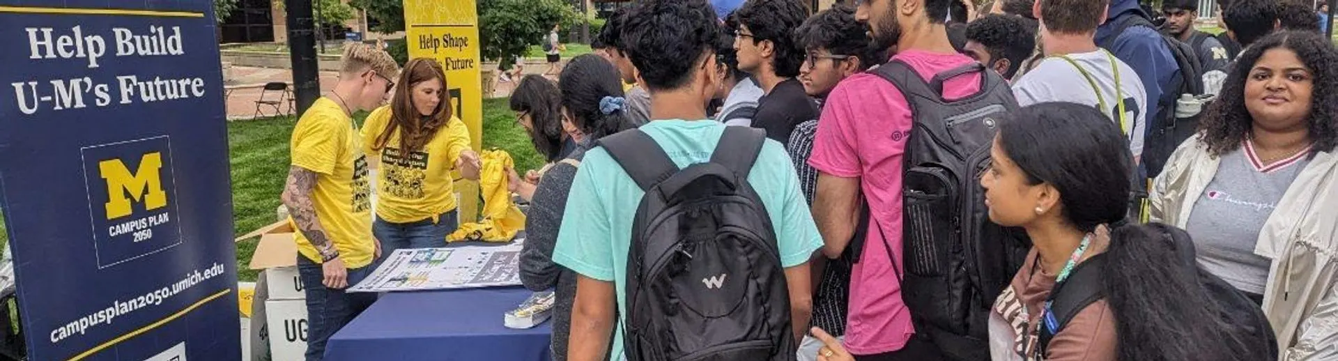 Input from the campus and broader communities was received via a dedicated Campus Plan 2050 website as well as other online engagement tools and surveys. The website was utilized to distribute content and information regarding the development of the plan and to obtain comments and feedback. Four public open houses held on campus in October of 2023 further informed the development of the plan by offering members of the campus community and the public the opportunity to contribute to the planning process. Throughout the entire process, additional feedback from Look to Michigan engagement events was shared; the results of which were used to shape this plan.